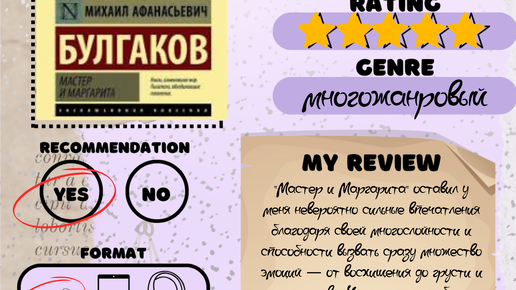 "Мастер и Маргарита" — одно из величайших произведений русской литературы XX века. Этот роман Михаила Булгакова захватывает своей многослойностью, где переплетаются философия, мистицизм, сатира и, конечно, любовь. Я выбрала этот роман для анализа, потому что он остается актуальным в любое время, особенно в современном мире, где темы власти, свободы и борьбы за правду звучат так же остро, как и десятилетия назад. "Мастер и Маргарита" — это не просто роман о борьбе добра и зла, это глубокое размышление о человеческой природе, смысле жизни и искусстве...