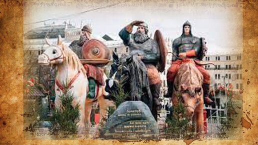 В чистом поле, на богатырских конях, находятся трое: Добрыня Никитич, Илья Муромец и Алеша Попович. Посередине, как известно Илья Муромец, смотрит вдаль, как бы высматривая басурман, слева Добрыня Никитич, с вынутым мечом, словно готовый в любую секунду ринуться в бой с захватчиками Руси, а справа Алеша Попович с луком в руках. Эту картину, написанную в конце XIX века Виктора Васнецова наверняка известна практически каждому жителю постсоветского пространства. Копии этой картины, оригинал которой находится в Третьяковской галерее, можно встретить и в школах, и даже в домах обычных людей...