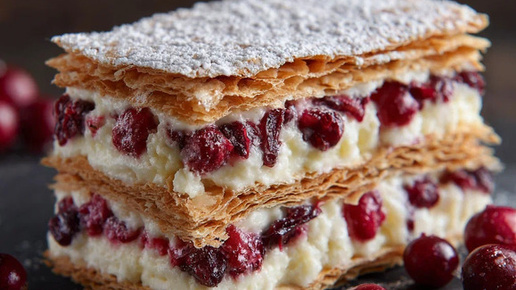 Домашний мильфей с клюквой