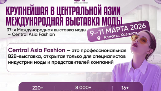 С 9 по 11 марта 2026 года в Алматы пройдет 37-я Международная выставка моды Central Asia Fashion, собирающая производителей, дизайнеров, байеров и лидеров мнений из более чем 20 стран. Это главное событие fashion-индустрии Центральной Азии вновь станет платформой для профессионального диалога, презентации новейших коллекций и обмена передовыми практиками отрасли. Выставка открывает широкие возможности как для поставщиков, так и для покупателей, формируя динамичную площадку для развития бизнеса и сотрудничества...