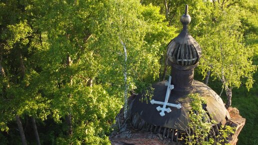упавший Крест удержался на куполе, впечатляющие кадры аэросъёмки храма Введения во Храм Пресвятой Богородицы в урочище Введенское