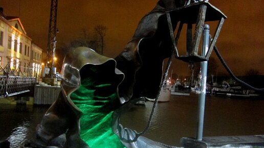 "Чёрный призрак" – это название скульптуры, установленной на месте, где когда-то стоял клайпедский замок. Она появилась здесь не ради развлечения, а как дань памяти давно минувших столетий. Согласно легенде, 19 февраля 1595 года стражник Ханс фон дер Хейд, охранявший замок Мемель, увидел мужчину, одетого в длинную чёрную мантию. Подойдя к охраннику, незнакомец поинтересовался количеством провианта в замке, а услышав, что с едой у жителей Мемеля всё в порядке, рассердился и исчез со словами: "Но зерна и дров вам всё же не хватит"...