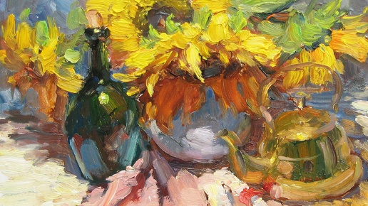 Посмотрел на «Горячие подсолнухи» и подумал: как же шаблонно устроено наше восприятие. Эти шаблоны художнику закладываются буквально с первых уроков изобразительного искусства. Преподаватель объясняет основы живописи и уверенно говорит: жёлтые и красные — цвета горячие, а синие и зелёные — наоборот, холодные. Но я сейчас не о цветоведении и даже не о тёплохолодности. Я о другом. О том, как вообще формируется наш внутренний мир. А формируется он чаще всего вот так — через простые формулы и готовые ответы...