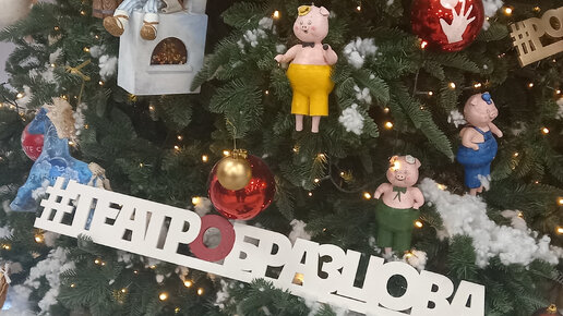 Сейчас многие города и веси сверкают и переливаются новогодними огнями, и каких только празднично украшенных ёлок не увидишь на улице и в помещениях. И дизайнерские, и тематические, и с красивой подсветкой. А в московском театре имени главного советского кукольника Сергея Образцова своя ёлка, особенная, можно сказать, именная. Вот такая Ещё и обозначена, что она непростая ёлка, а театральная А раз это театр кукол, то и игрушки на этой ёлке не простые, а кукольные, из разных спектаклей. Вот мы с вами сейчас посмотрим и погадаем, что это за куклы и из каких спектаклей они могут быть...