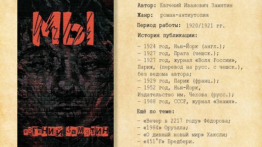 #книгобзор202 читали · 4 года назадПодписаться«Мы» Замятина: больше, чем антиутопияО романе-антиутопии «Мы» Евгения Замятина.