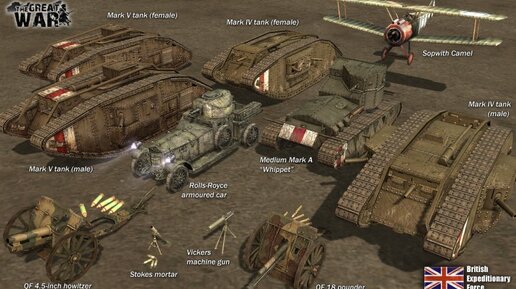 Обзор фракции британских экспедиционных сил (БЭС) мода The Great War 1918 для Company of Heroes. Мод посвящен боям на Западном фронте в годы Первой Мировой войны. В модификации две стороны Британский Экспедиционный корпус и Рейхсвер, вооруженные силы кайзеровской Германии. Доктрины Экспедиционные силы Великобритании для достижения победы располагают следующими доктринами: Ударная пехота Вопреки названию половина доктрины посвящена авиаподдержке, зато вторая половина действительно несколько усиливает пехоту...