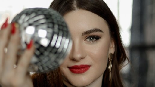 Обворожительная дама в черном платье поучаствовала в нашей фотосесии, прошедшей в студии. Ее игривый вгляд завораживает, а маленький дискошар придает немного магический оттенок.