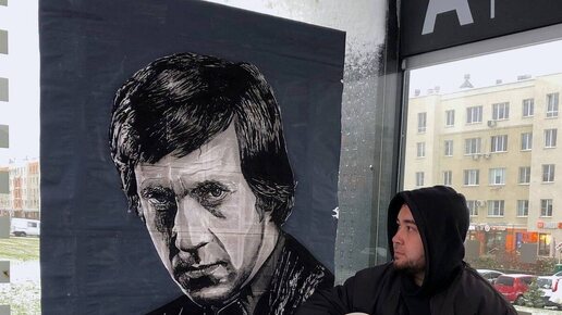 Прокопьевский художник Дамир Хуссамов нарисовал портрет Высоцкого на остановке