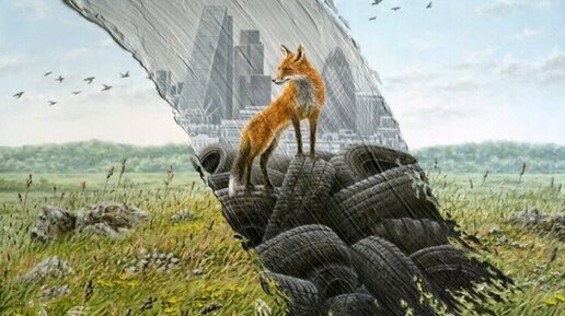 Картины, прерываемые гигантскими мазками кисти, показывают разные эпохи одного и того же места: 14 фото