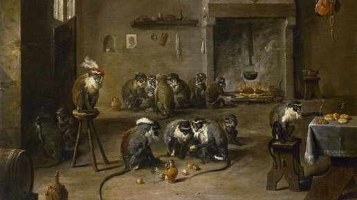 Давид Тенирс Младший «Обезьяны на кухне» || Картины в Эрмитаже