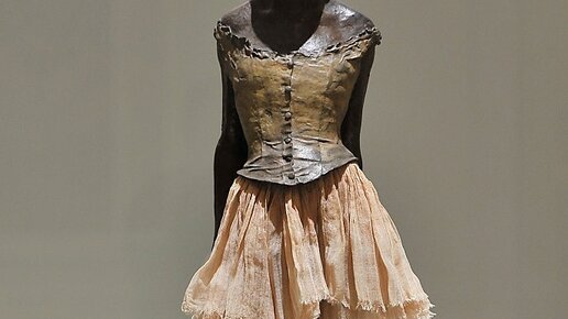 Эдгар Дега любил изображать балерин и алкашей. А ещё он создавал скульптуры. Об одной из них, самой известной и скандальной, и поговорим. "La petite danseuse de quatorze ans" - "Маленькая четырнадцатилетняя танцовщица" была выставлена в 1881 на экспозиции импрессионистов. Мнения по поводу скульптуры разделились. Некоторые восхищались: как живая! Большинство же зрителей и критиков плевались: некрасивая анатомичная восковая кукла. "La petite danseuse..." не такая уж и petite - 98 см в высоту. Сделана почти в прямом смысле из г**на и палок...