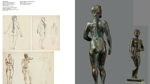 Изучая рисунки и скульптуры, которые сейчас представлены в нашем выставочном пространстве на предаукционной выставке "Александр Дейнека. Нагота", мы нашли еще одно очень интересное сравнение. В каталоге, подготовленном в рамках масштабного культуpoлогичеcкого проeктa "Александр Дейнека. Исследования, книги, выставки. 2009-2011", начатого Издательской программой "Интерроса" в партнерстве с Государственной Третьяковской галереей накануне 110-летнего юбилея художника, мы можем видеть одну из скульптур, которая представлена у нас...