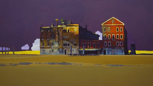 Пространство пейзажей Дениса Саунина впускает в себя зрителя с его собственными догадками и попытками предугадать, что же случится в следующее мгновение. Метафизичности картинам добавляет особое отношение художника к природе: состоянию неба, воды, воздуха, ветра и земли, именно они становятся проводниками душевных переживаний.⁣ В картине «Вечер» присутствие человека едва уловимо, мы догадываемся о нем по расставленным стульям, свернутым зонтам, горящему свету в некоторых окнах. Как будто действующие...
