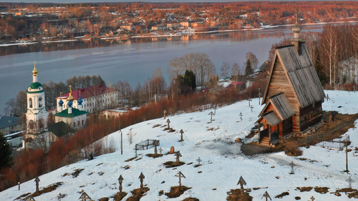 "Над вечным покоем" Знаменитая картина И. Левитана по идее должна была быть похожей на первый кадр этой подборки, где деревянная церковь возвышается над Волгой. (Вид с дрона). Но художник сделал коллаж и задний план "Вечного покоя“ дописал на озере Удомля в Тверской области...