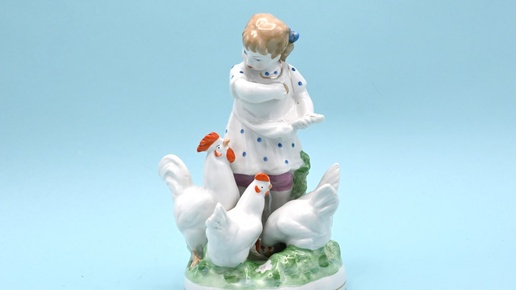 Фарфоровая статуэтка" Юная птичница" Девочка кормит кур 1959 г Дулево.