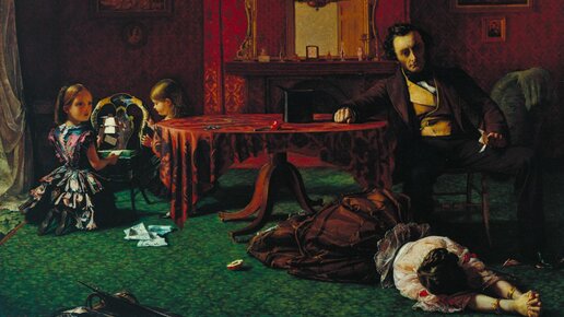 На этой картине мы видим семью, состоящую из мужа, жены и двоих дочек. Вот только здесь явно произошёл какой-то разлад — мужчина сидит, уставившись в одну точку, а его супруга лежит на полу и плачет. ...