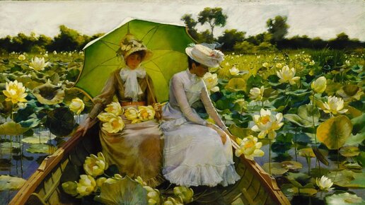И еще на фоне возвышенности. Именно такое представление сложилось у меня об основной сюжетной линии удивительных жанровых картин выдающегося американского художника Чарльза Кортни Карана (1861-1942 гг.). Совсем недавно мы с вами, дорогие читатели, любовались подборкой картин прекрасных женщин с букетами прекрасных цветов. Именно тогда я и обратила внимание на тонкое чувство цвета этого живописца: лепестки пионов отбрасывали нежный розовый и перламутровый свет на лицо девушки (1). Бывают художники одной картины: буквально влюбишься в эту работу, идешь знакомиться с другими...