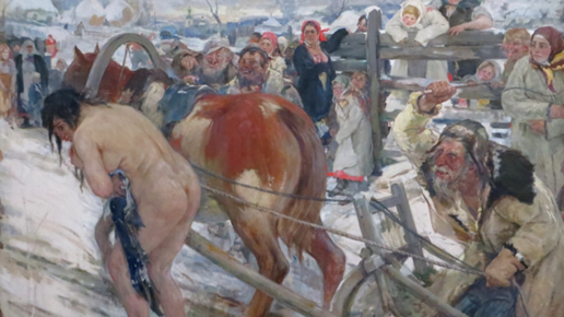 Дореволюционная Россия… 1905 год. Несмотря на то, что крепостное право отменили почти полвека назад, в семейном праве ничего не поменялось. Как били мужья жен, так и продолжали это делать. А заикнись супруга о разводе, частенько случалось то, что изображает картина Александра Бучкури под названием «Вывод». Что означает слово «вывод» Если жена была уличена в измене, то ее «выводили», то есть гнали обнаженную по всей деревне, галдя, кидая камни и насмехаясь над женщиной. У Максима Горького есть очень подробное описание этого процесса в рассказе с одноименным названием «Вывод»...