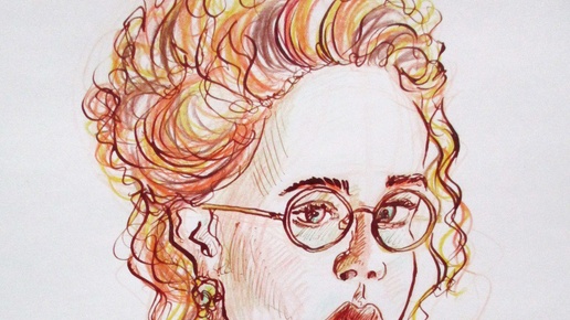 Девушка в очках тушь + цветные карандаши #100_портретов_с_катей_беллами