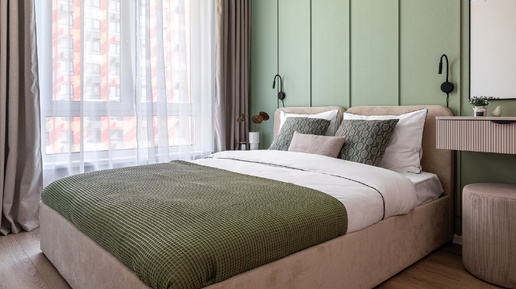 Пастельная симфония: современная евродвушка 32,1 кв.м в дымчато-зеленых тонах