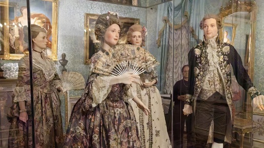 На первом этаже мы остановились около прекрасных дам – изысканные веера, торжественные платья, сложные прически… Ах! Такая детализация притягивает взгляд и заставляет завидовать эпохе балов. Блеска и золота этим залам не занимать.