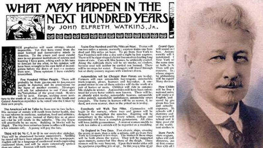 В декабре 1899 года никому не известный американский инженер Джон Элфрет Уоткинс опубликовал в рядовом женском журнале статью под названием «Что может произойти в следующие сто лет?». Не самое интересное чтиво для слабого пола, публикация прошла почти незамеченной. О ней вспомнили спустя сто лет, когда по чистой случайности, тест попался на глаза одному из журналистов. Корреспондент сравнил прогнозы Уоткинса с реальностью и поразился. Большая часть из того, о чем писал автор больше сотни лет назад сбылась с удивительной точностью...