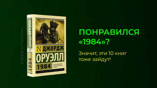 Если вас зацепила мрачная атмосфера «1984», история Уинстона Смита и пугающий образ Большого Брата — эта подборка для вас. Десять сильных антиутопий, которые поднимают темы тоталитаризма, подавления личности, контроля над сознанием и борьбы за свободу. Подборка составлена на основе личного читательского опыта и отзывов других читателей. 1. «Мы» — Евгений Замятин Сюжет: первый в мире антиутопический роман о безличном государстве будущего, где люди — нумера, а личная жизнь упразднена. Герой начинает сомневаться в системе...