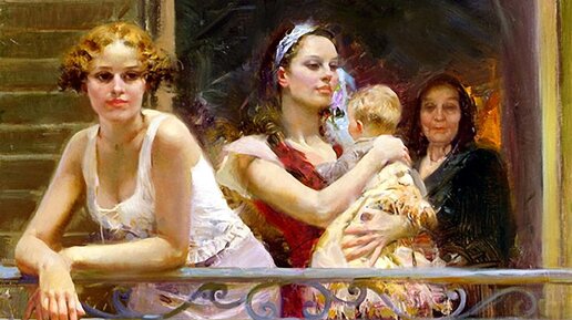 Работы итальянского художника Джузеппе Данжелико (Giuseppe Dangelico) можно встретить под псевдонимом Пино Даэни. Многие считают, что акцент у живописца сделан на чувственность несколько оторванную от реальной жизни. И всё же это не умаляет красоты и грации созданных им образов, и потому накануне женского праздника хотелось рассказать вам об этом художнике. Уже будучи известным у себя в Италии, Джузеппе уезжает в США. Неглубокие, милашные сюжеты с умиротворёнными красавицами имели здесь серьёзный коммерческий успех...