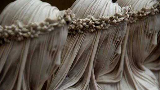 …Тончайшая ткань окутывает нежное кроткое лицо. Кажется, можно ощутить, как она трепещет от лёгкого дыхания женщины, которая скорбит или молится, потупив взор. …Невесомый покров опустился на истерзанное тело, покрыл спасительной пеленой искажённый страданием лик, на который Смерть положила печать отдохновения от мук. …Складки вуали, схваченные венками из цветов, струятся по плечам юных дев, обрисовывая тонкие черты, скрытые воздушной тканью. При взгляде на эти изваяния невольно возникает вопрос:...