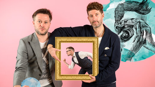 Артисты Comedy и ведущие Дмитрий Кожома, Иван Пышненко (Москва) и ведущий Дмитрий Веселов (Рязань) в творческой фотозоне от компании Гамма и Дмитрия Вороширина, Сочи, 21 апреля.
