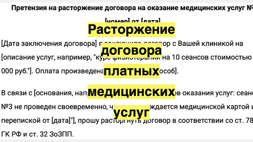 Платные медицинские услуги часто оформляются договором, но что делать, если качество не соответствует ожиданиям или возникли другие проблемы? В статье мы разберем, как расторгнуть договор с медцентром на оказание платных услуг и в каких случаях это допустимо по Гражданскому кодексу РФ и Закону о защите прав потребителей. Вы узнаете о процедуре заключения и расторжения договора, а также о ваших правах как пациента. Мы рассмотрим основания для расторжения: некачественные услуги, нарушение сроков, отказ от лечения или другие существенные причины...
