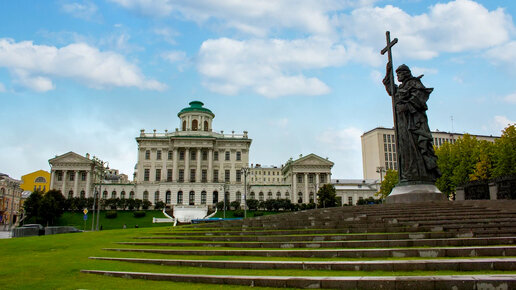 В самом центре Москвы, прямо напротив Кремля, расположено очень интересное здание. Это Дом Пашкова - назван он так по имени своего первого владельца, капитан-поручика Семёновского полка Петра Егоровича Пашкова. На закате солнца высоко над городом на каменной террасе одного из самых красивых зданий в Москве, здания, построенного около полутораста лет назад, находились двое: Воланд и Азазелло. Они не были видны снизу, с улицы, так как их закрывала от ненужных взоров балюстрада с гипсовыми вазами и гипсовыми цветами...