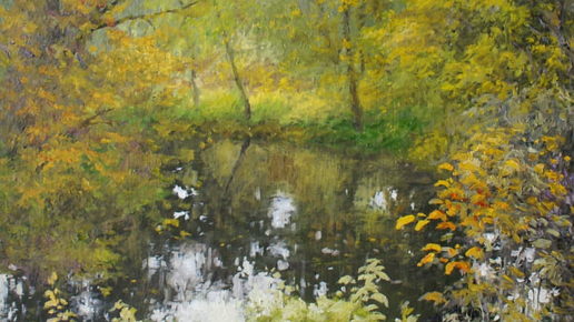 Сегодня Вашему вниманию картины нашего современника Сергея Дорофеева. Многогранность звучания его пейзажей предстанет в значении природных веяний. Как например в этой картине. Веяние, быть может, прежде — дуновение. В картине словно дыхание осени запечатлено. Удивительная воздушность в цвете и свете. Пруд в осеннем парении воздуха отражен. В его волшебном осеннем сиянии. Деревья продолжают впечатление, воздушностью листвы восхищая, при этом будто напоминая о недавнем солнечном летнем свете. И в этом пейзаже дыхание природы словно запечатлено...