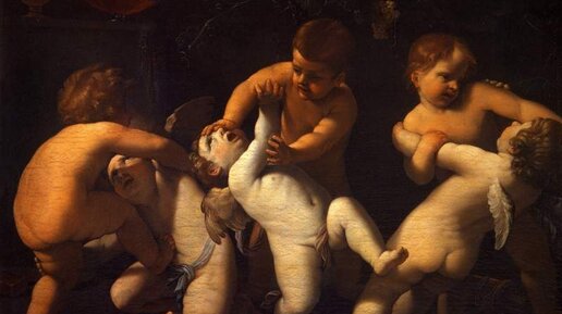 Дитя - это же символ совершенства? Чистоты и безгрешности? Именно такую смысловую нагрузку несли дети в картинах мастеров Ренессанса, Барокко, в галантной живописи... Даже у немногочисленных реалистов 17-18 веков изобразить порочного ребёнка считалось едва ли не кощунством. Ангелоподобие - обязательно! И если уж эфирные создания ... дерутся - это воспринималось как шутка: Всё же не ангелы - амуры. Античная мифология не столь травоядна - её персонажи подраться могут. Но из-за чего можно буквально...