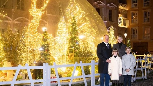 Волшебная красота: князь Монако Альбер и княгиня Шарлен с детьми зажгли рождественские огни на Дворцовой площади Монте-Карло