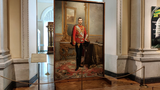 Двусторонняя живопись – на первый взгляд банальное явление. Среди иконописцев это осознанное действо с целью практического использования двух образов на одной доске. В современной практике художники могут экономить имеющиеся у них материалы и расписывать холсты или иные поверхности с обратной стороны тогда, когда невозможно стереть или замазать изображение с другой. Но когда на создание картин-«перевёртышей» влияют политические мотивы – это для меня увлекательная и весьма редкая история. В Эрмитаже один из экспонатов занял козырное место в галерее вдоль Николаевского зала...