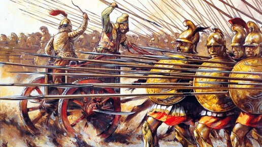 Колесницы смерти В 401 году до нашей эры древнегреческий полководец и писатель Ксенофонт присоединился к армии Кира Младшего, персидского претендента на престол. Чтобы вместе выступить против царя Артаксеркса II (старшего брата Кира). И в ходе битвы при Кунаксе греки впервые столкнулись с невиданным доселе оружием - серпоносными колесницами или колесницами смерти. Ксенофонт стал свидетелем страшной картины: тяжелые квадриги (колесницы с 4 лошадьми в упряжи) с лезвиями, приделанными с двух сторон к оси, вклинивались во вражеский строй и сеяли форменный хаос...