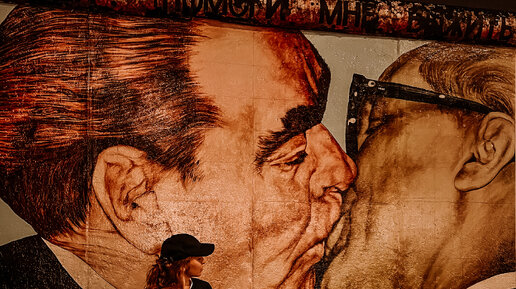 «Господи, помоги мне выжить среди этой смертной любви» один из самых известных граффити мира, «братский поцелуй», мощнейший визуальный символ политических перемен и окончания холодной войны. Граффити написан Дмитрием Врубелем , по фотографии ,где Л.И.Брежнев одарил председателя Госсовета ГДР Эриха Хонеккера страстным поцелуем😀. Известное фото разлетелось по всему миру, печатали во всех газетах, на чашках, футболках, рюкзаках. В СССР фото было запрещено! В заключительной части прогулки по Берлину...