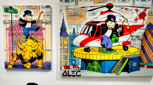На днях состоялось открытие выставки известного художника Алека Монополи в Дубае. Он известен своими картинами в стиле граффити с мотивами ценностей современного общества: деньги, слава, luxury образ жизни и модные бренды. Богатые дяди жонглируют деньгами, летают на частных самолетах, ездят на лучших авто - образ вершины успеха. Эти картины продаются на лучших аукционах и собирают миллионы...