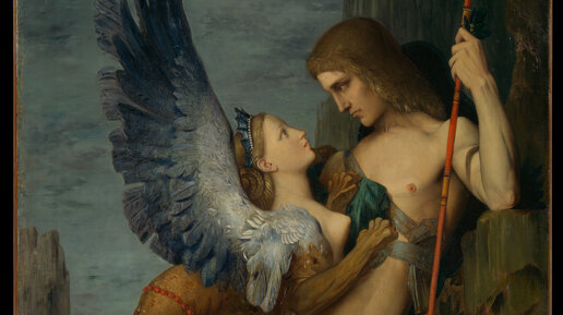 Картину «Эдип и Сфинкс» написал французский художник, почитатель античности Гюстав Моро. Согласно мифу, Эдип был сыном царя Фив. Однако отец еще в младенчестве велел рабу отнести ребенка в лес на съедение зверям — правителю напророчили, что он погибнет от рук сына. Но раб пожалел младенца и отнес его в соседний город, где ребенка взял на попечение царь, бывший бездетным. Однажды на празднестве кто-то из пьяных гостей сообщил Эдипу, что он неродной сын царю. А пифия (предсказательница) предсказала, что он убьет родного отца, женится на своей матери, и у них родятся проклятые всеми богами дети...