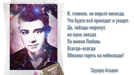 📖 Почему его стихи читают и любят? Интерес к творчеству Асадова не угасает уже более 60 лет, хотя так называемая профессиональная литературная общественность не признавала и не признает в нем настоящего поэта, пренебрежительно называя его «поэтом для кухарок». Но жизнь все расставляет по своим местам, четко определяя критерии творчества Поэта с большой буквы, каждая строка которого пропитана любовью и добротой к людям, верой в счастье и справедливость. Читая стихи Асадова, каждый, не до конца...