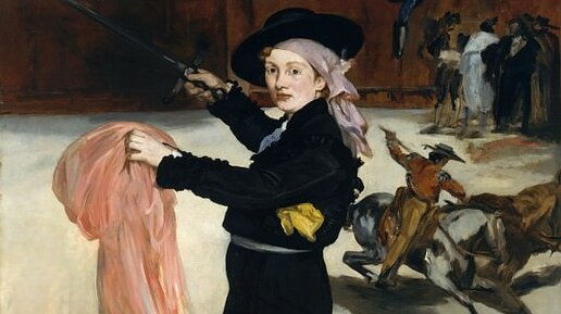 Считается, что самое знаменитое произведение Эдуарда Мане - это его скандальный "Завтрак на траве". Он вообще любил творить смело и остроумно. Никто не играл с наследием художников так, как Мане. Картина "Мадемуазель В. ... в костюме эспады" очередное этому подтверждение: Название картины подсказывает нам, что тореадора изображает мадемуазель. Именно тут впервые появляется эта девушка, которой суждено было стать главной моделью художника. Она была его блистательной помощницей, и не упомянуть её в связи с Эдуардом Мане было бы просто неприлично...
