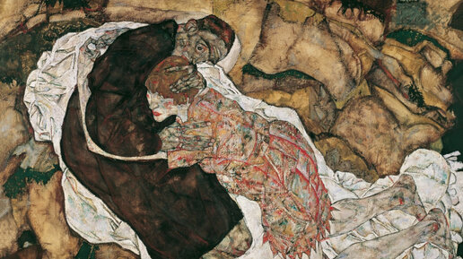 Одна из самых известных работ Эгона Шиле носит название "Смерть и Дева", 1915. В отличие от предыдущих работ, отражающих концепцию смерти, эта картина очень личная для художника. На ней изображены мужчина и женщина, стоящие на коленях на белой измятой простыне. Женщина, одетая в роскошное нижнее белье розовых оттенков, отчаянно цепляется за мужчину, обхватив его руками и с силой сцепляя руки за спиной, будто неведомая сила отталкивает их в разные стороны. Кажется, будто это их последние объятия. Мужчина облачён в тёмную одежду священника...