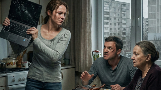 «Хуже грязи!» — рявкнула свекровь, когда муж при детях растоптал мой ноутбук. Через 40 секунд они оба побелели от записи диктофона