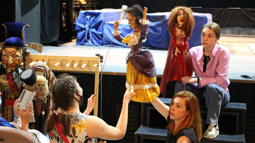 Начался наш экскурсионный марафон 1 июня - в День защиты детей. На экскурсию в театр кукол мы приглашали взрослых. Но мне кажется, те, кто пришел, в душе всё-таки немного дети. Поэтому так ярко и живо откликнулись они на общение с куклами и артистами театра. Красноярский театр кукол находится в жилом доме. А до театра в этом помещении находился... Клуб НКВД) А эта красивая люстра с названием "Перо Жар-птицы" весом 800 кг висит уже более 30 лет на специальных балках, продуманных архитектором Арэгом Демирхановым...