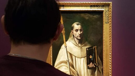 ГРЕК На выставке две картины Эль-Греко. Та, о которой сейчас пойдёт речь, написана в более классическом, а не фирменном эль-грековском стиле, как, например, представленный здесь же "Святой Иоанн Креститель". СВЯТОЙ БЕРНАРД (1577-1579) попал в СССР из Германии в 1945 г и долгое время, находясь в запасниках Эрмитажа, на Западе считался утраченным. С этой картиной, в числе других четырёх работ Эль Греко, ранее случилась забавная история: монахи испанского монастыря Санто-Доминго-эль-Антигуо в начале XIX века продали (Всевышнего не убоявшись?!)) четыре картины Эль Греко и заменили их копиями...
