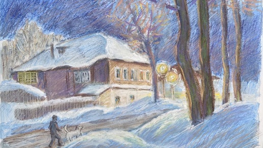 В прошлой статье я рассказывала, как рисовала натюрморт с котом в технике сухой пастели. Погрузившись в эту технику, выбрала сюжет для новой работы - с зимним вечерним пейзажем. Часто хожу мимо этого домика во время прогулок с собакой, и давно присматривалась к нему. Планировала написать этот мотив ещё летом, маслом, но не сложилось. (Признаюсь, композицию взяла с фотографии.) Начало работы - выполнение "подложки" - подмалёвка гуашью по бумаге: По полностью высохшей гуаши можно работать пастелью...