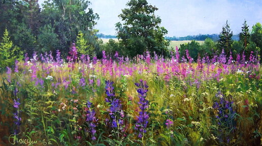 Приветствую на страницах "Позитива красок", уважаемые читатели! На календаре, практически, макушка лета, и пока вокруг нас так много ярких красок, хочется как можно больше сделать летних подборок с пейзажами родных просторов. Познакомившись с творчеством современной художницы Елены Покушевой, я поняла, что ее картины, как нельзя лучше подходят для настоящего момента. Именно сейчас тот самый период, когда разнотравье во всей своей красе, пышное лиловое цветение люпинов смешивается с розоватыми вспышками...