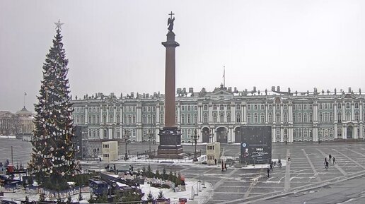 Новогоднюю елку на Дворцовой площади нарядили гирляндами и игрушками