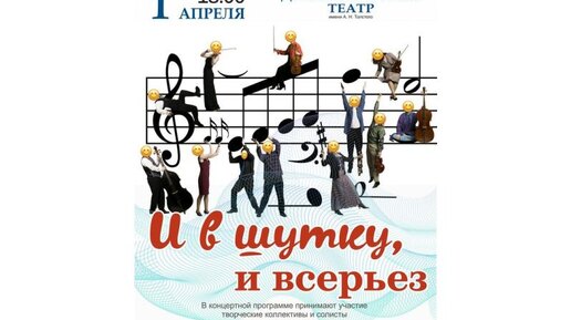 Центр музыкального искусства и культуры приглашает жителей Сызрани на уникальное музыкальное событие - концертную программу «И в шутку, и всерьёз», где классическая и современная музыка, шутки и юмор сольются в единое целое. В исполнении творческих коллективов и солистов муниципального оркестра Сызрани прозвучат зажигательные, искрометные и бесконечно красивые произведения популярной и современной классики, а также неожиданные дуэты, забавные пародии на известные хиты, шуточные интермедии, которые заставят зрителей улыбнуться или смеяться до слёз...